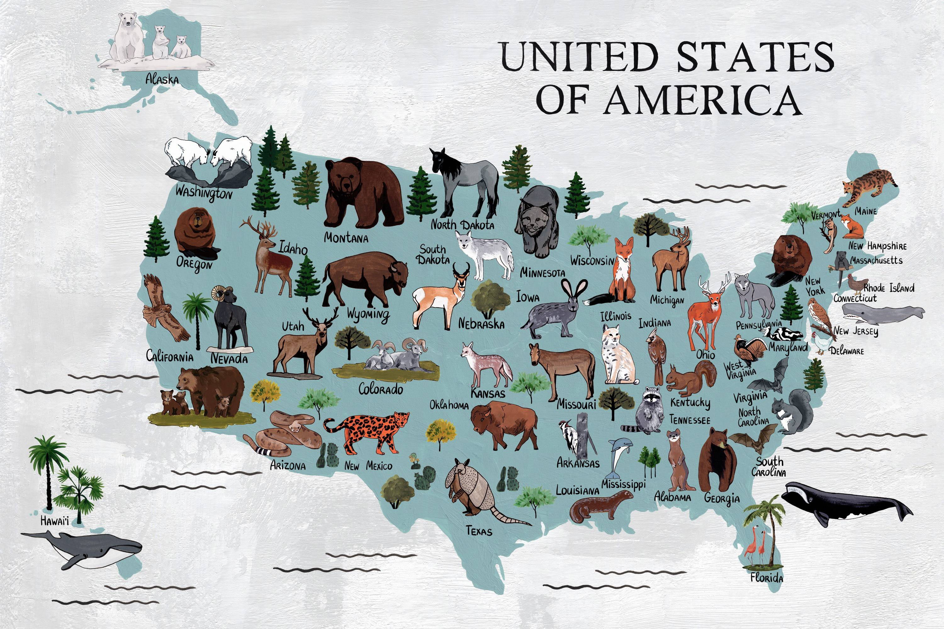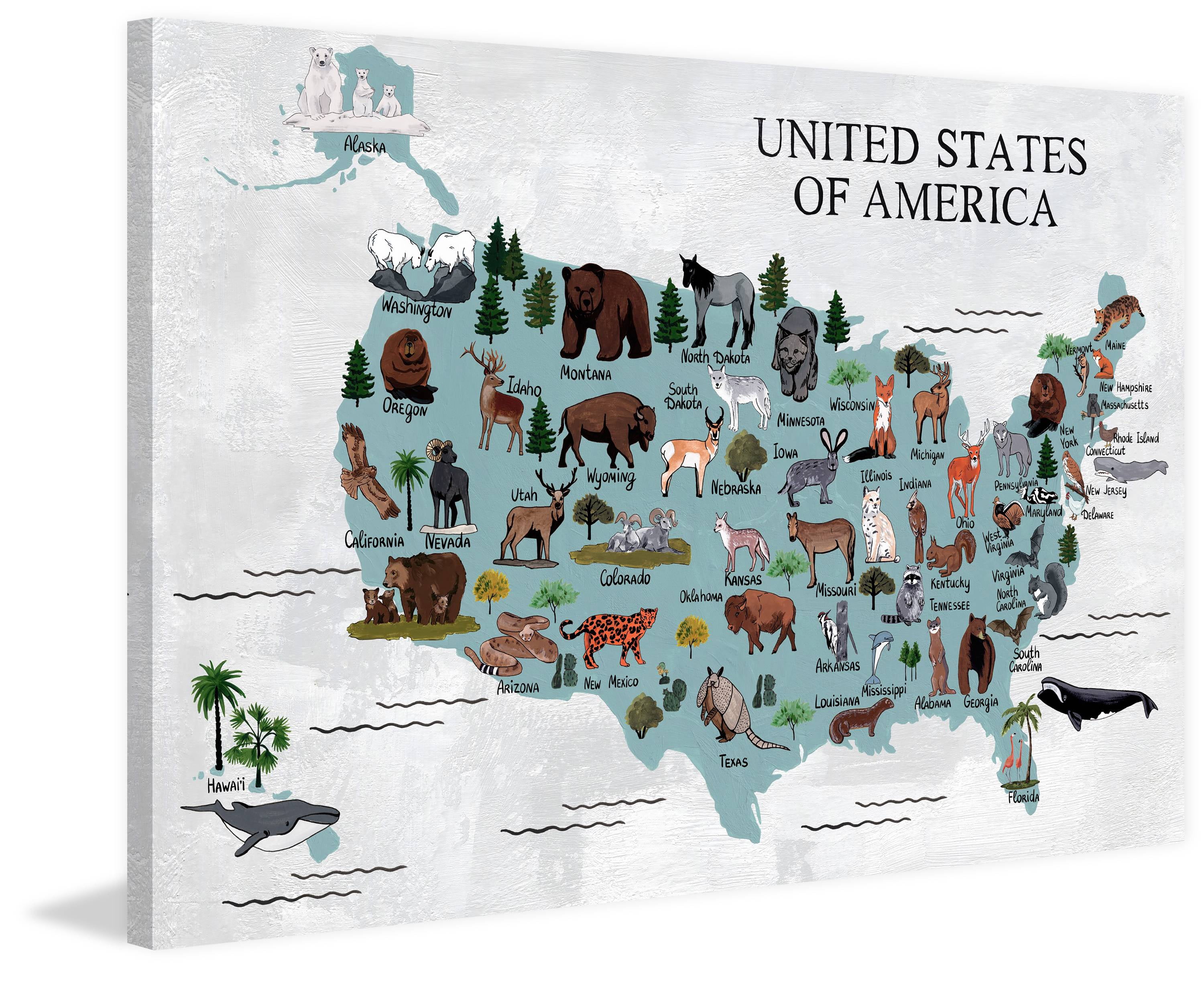 Marmont Hill Animals Map Canvas Wall Art Walmart Com